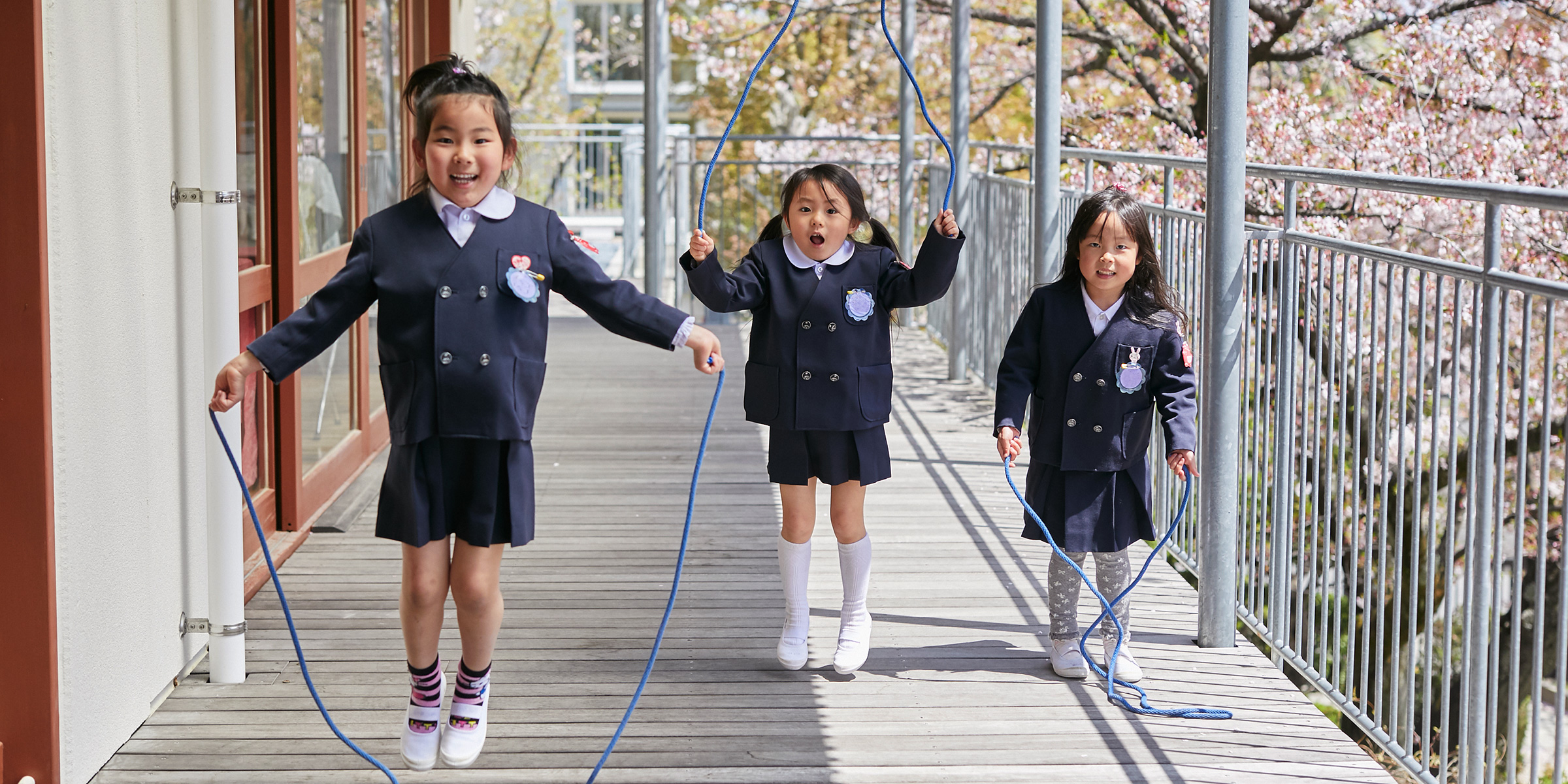 私たちは「じょうぶなからだ うつくしいこころ」を教育目標に掲げ、 自然を愛し文化と芸術を培い道徳的心情の向上と体の健康増進を主軸にして 情操豊かな人間育成に最善をつくします。